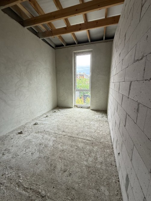 1 пов: великий хол з кухньою, сан вузол. Тераса з виходом у двір. Двір готовий, з газоном і кущами.