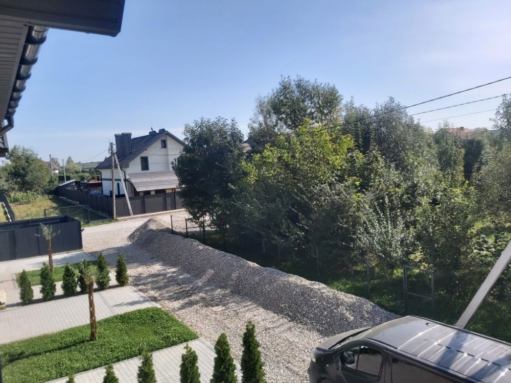 БЕЗ%, будинок 190м2, Віта Поштова, СТ «Хуторець», навколо ліс, 9 км Київ та м.Теремки, Одеська траса Загальна площа будинку - 190м2. Площа земельної ділянки 10.38 соток. Будинок знаходиться в затишному та мальовничому місці, між Вітою Поштовою та Тарасівкою, оточений дорослим хвойним та листвяним лісом, з власним виходом на озерце. Побудований на пагорбі, дає можливість насолоджуватись неперевершеним видом на ліс та озеро, крізь великі панорамні вікна будинку 24/7. Раціональне та комфортне планування, великі, світлі та просторі кімнати з панорамними вікнами. 1й поверх: столова – вітальня, кухня, гердероб, санвузол, гараж, котельня; 2й поверх: три окремі спальні кімнати, санвузол. Об’єкт для поціновувачів заміської тиші та ранкових піщих прогулянок!