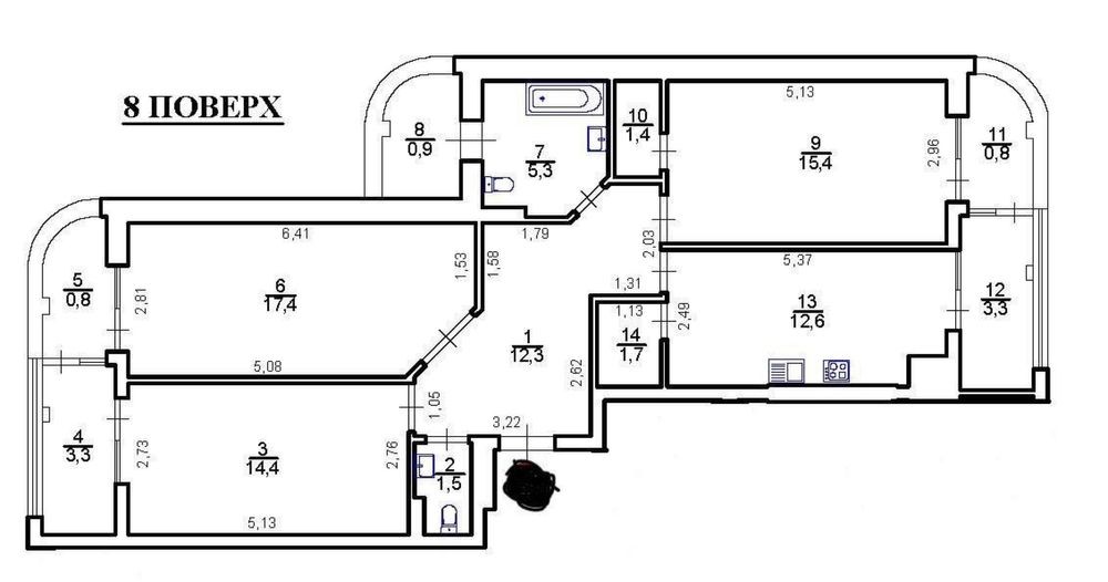 • Площа кухні 12.6 м2