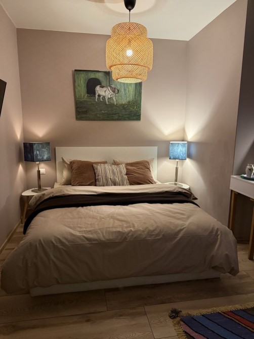 - Студійна зона поєднує в собі зону кухні, відпочинку, робоче місце та спальну зону з великим двохспальним ліжком та ортопедичним матрацом.