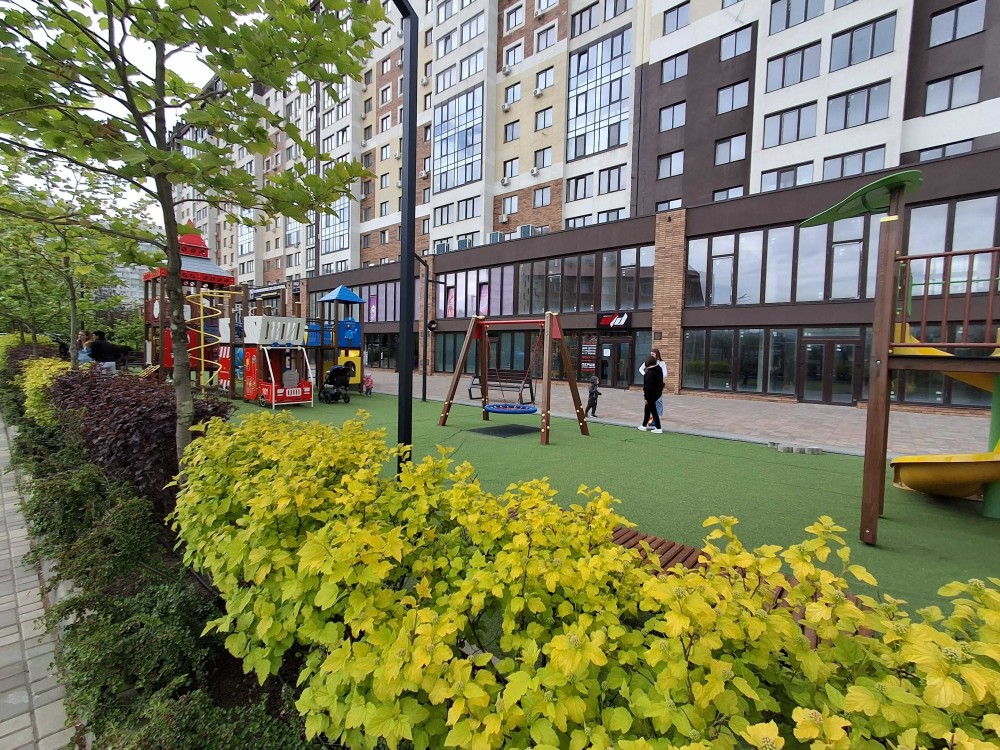 На территории комплекса - спортивные и детские площадки, кафе, спортивный зал, магазины. Также на территории есть зоны отдыха с ландшафтным дизайном, видеонаблюдение, охрана и, что особенно важно, подземный паркинг.
