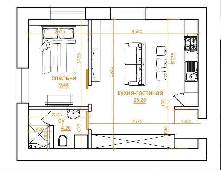 Кухня-студия + спальня