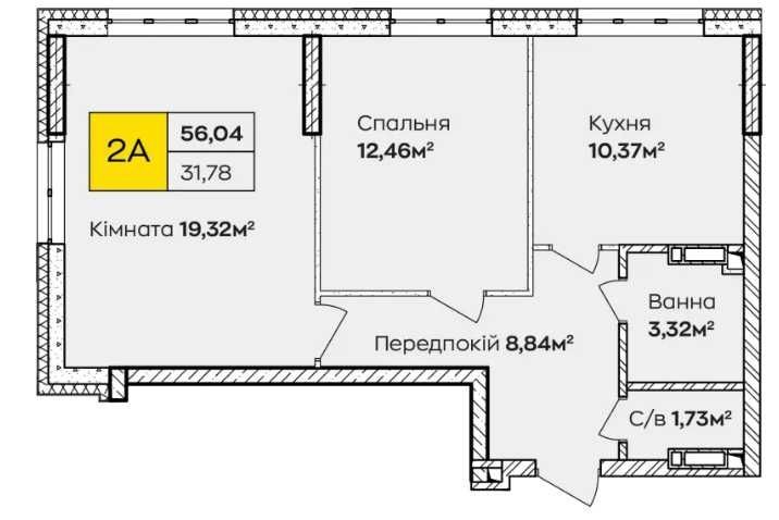 • Загальна площа 56.04 м2