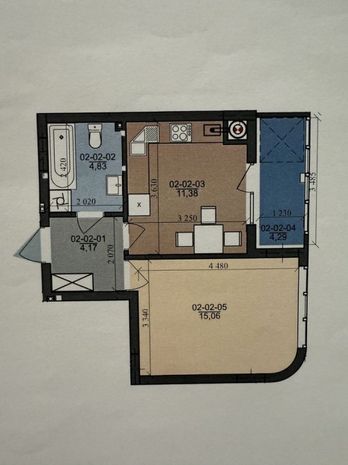 • Площа кухні 11.38 м2