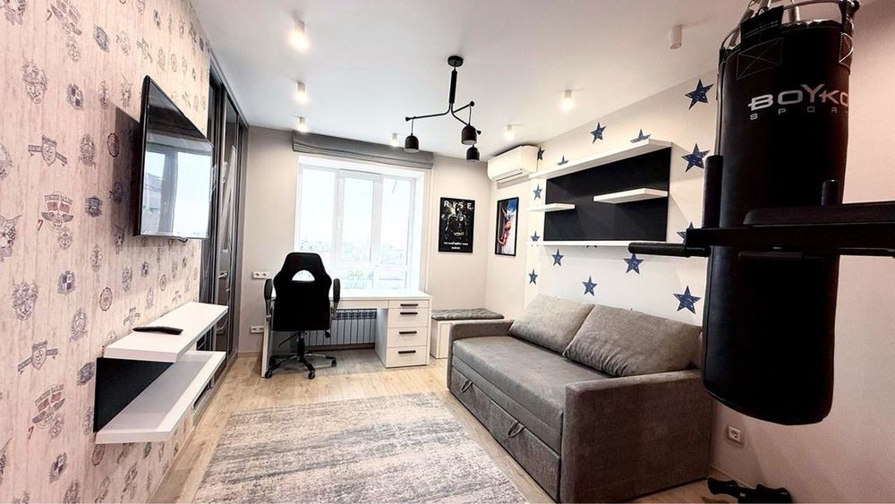 Продаж смарт квартири з дизайнерським ремонтом у клубному будинку в ЖК Sky Hill, у самому центрі столиці. Ідеально підходить для проживання чи здачі в оренду. 5 хвилин пішки до м. Видубичі та ботанічного саду ім.М.Гришка.