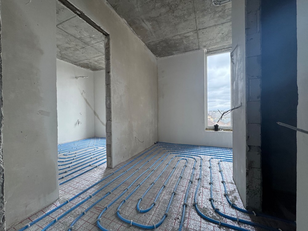 Квартира вже зі штукатуркою, розводкою електрики, теплою підлогою по всій квартирі, повністю з усією розводкою сантехніки, інсталяція Grohe, вивід під кондиціонер !