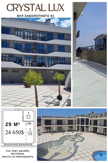 Малоквартирний Клубний Дім Crystal Lux має індивідуальне газове опалення, ліфт, бомбосховище, запас води на 3 доби та паркувальне місце у подарунок! Висота стелі 3.2м, перестінки з керамоблоку, товщиною 250мм, який має високу міцність, відмінну тепло- і звукоізоляцію, морозостійкість і вогнетривкість, а також екологічність і паропроникність. Малоквартирний Клубний Дім Crystal Lux із басейном та рестораном створює затишну атмосферу, де кожна деталь продумана для комфорту мешканців. Елегантне архітектурне рішення нашого будинку зі світлими коридорами та дизайнерським оформленням не залишить нікого байдужим.