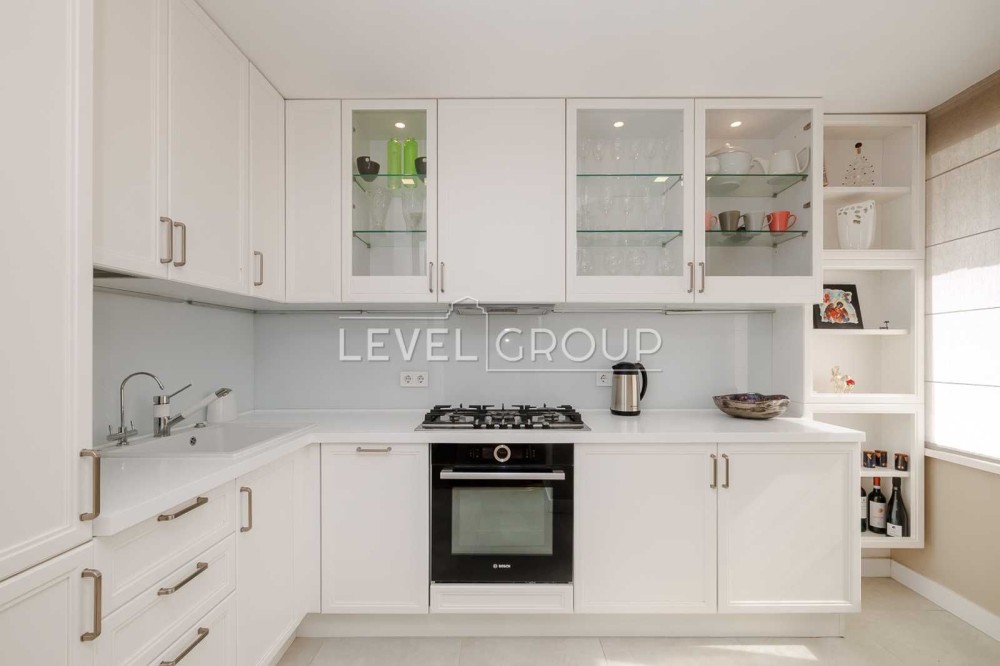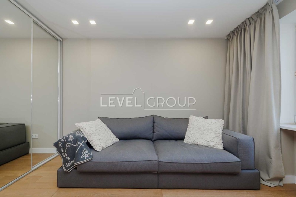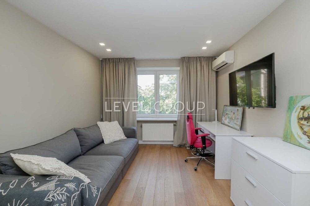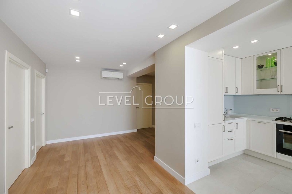 В квартирі виконано сучасний ремонт з використанням якісних матеріалів. Є всі необхідні меблі та техніка для комфортного життя: газова плита та духова шафа, посудомийна машина, вбудований холодильник з морозильною камерою, кондиціонери, бойлер, телевізор, встановлені фільтри для води тощо. Планування передбачає кухню та вітальню, дві роздільні кімнати, санвузол з ванною та душовою кабіною, гардеробну. Квартира світла та простора, проживали лише власники. Розвинена інфраструктура поруч: зручна транспортна розв'язка (в пішій доступності станції метро Контрактова площа та Тараса Шевченка), магазини, кав'ярня, Дитячий парк на Пейзажній алеї, сквер Гайдара Алієва.
