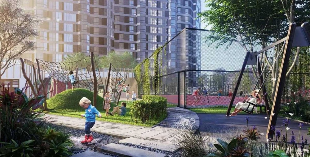 Комплекс вирізняється сучасною архітектурою та світлими фасадами. Територія закритого типу, без машин, із численними місцями для відпочинку, дитячими та спортивними майданчиками, кав’ярнями та навіть кінотеатром.