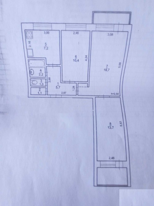 • Площа кухні 7.2 м2