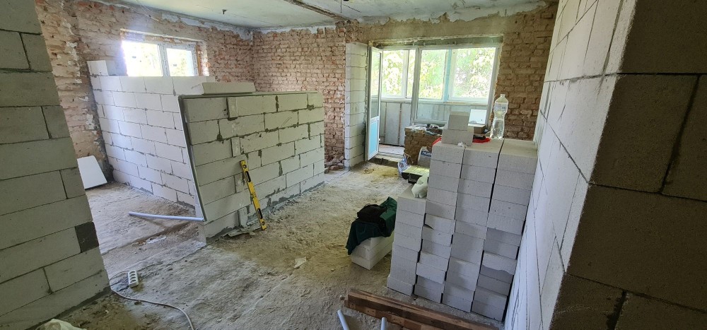 Перестінки з газоблоку майже докладені, замінені всі вікна на склопластикові, новий балконний блок, засклений повністю балкон. Ззовні квартира повністю утеплена пінопластом 100мм, нові вхідні двері.