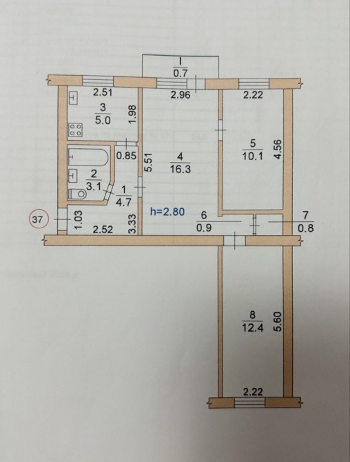• Площа кухні 5 м2