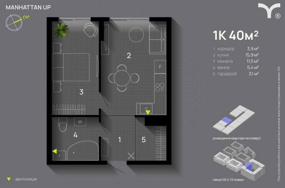 Площа: 40 м² — просторе та зручне планування.