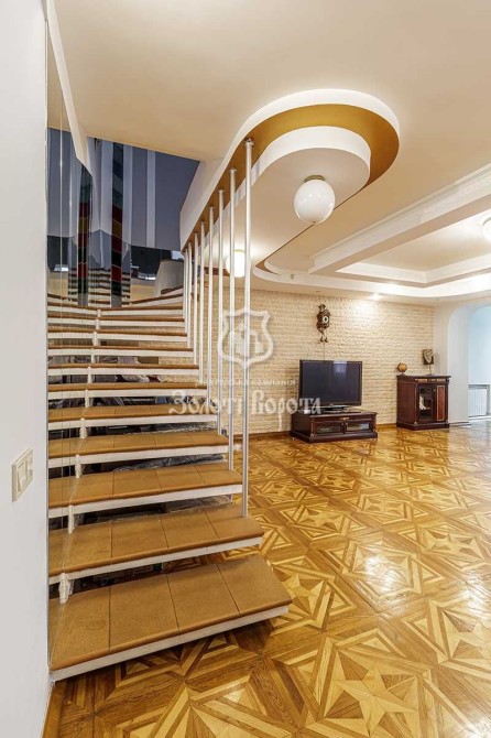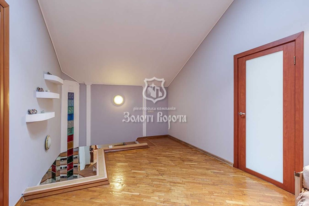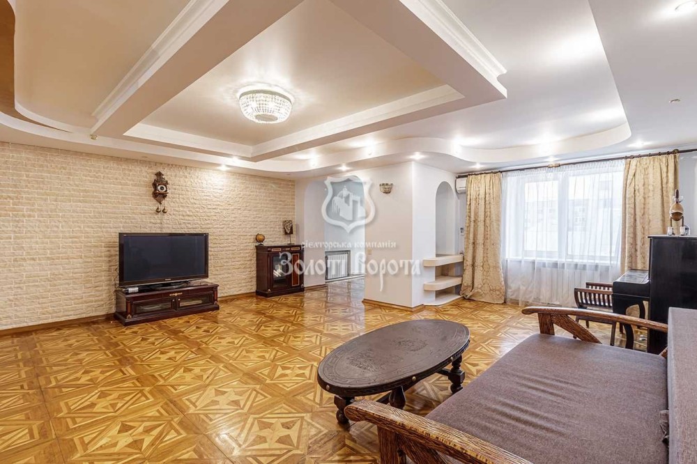 Квартира розташована на останніх двох поверхах і має загальну площу, що дозволяє зручно розмістити велику родину. Всі кімнати роздільні, що забезпечує максимальний комфорт та приватність для кожного мешканця. Простора кухня і величезний світлий зал стануть ідеальними для прийому гостей або сімейних вечорів. У квартирі є два санвузли на першому та другому поверхах.