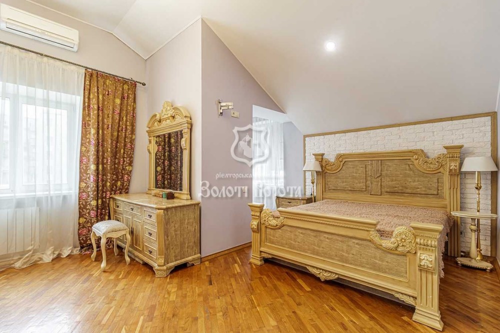 Головна спальня з італійським мармуровим каміном має окремий санвузол з джакузі, що створює атмосферу розкішного відпочинку. Зимовий сад і вікна в підлогу додають ще більше простору та природного світла в інтер'єр. У всіх кімнатах покладений дорогий паркет, що підкреслює елегантність і затишок.