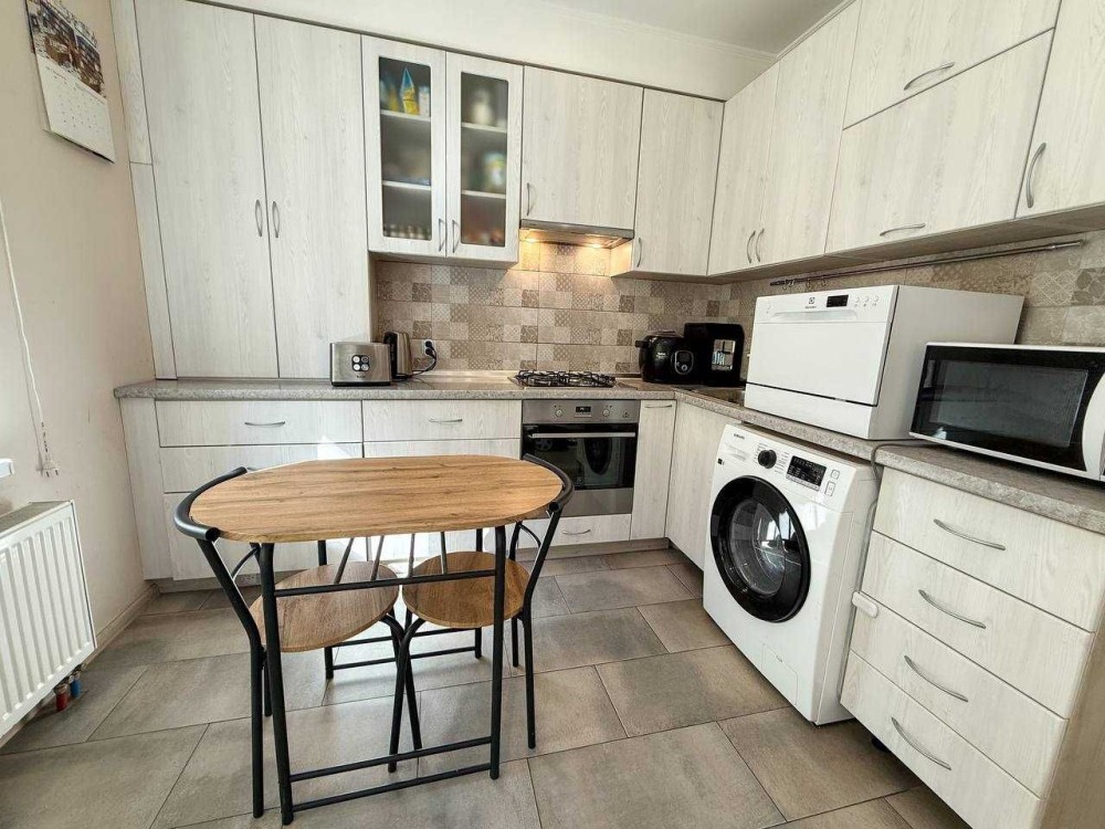 • простора кухня з вбудованими меблями та посудомийною машиною;