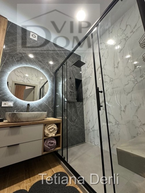 Квартира общей площадью 72 кв м плюс терраса , расположена на 4м этаже , квартира с удачной планировкой. Две спальни и гостиная, шкафы и гардеробные. Множество подсветок подчеркивает дизайн проект квартиры.