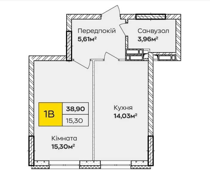 • Загальна площа 38.9 м2