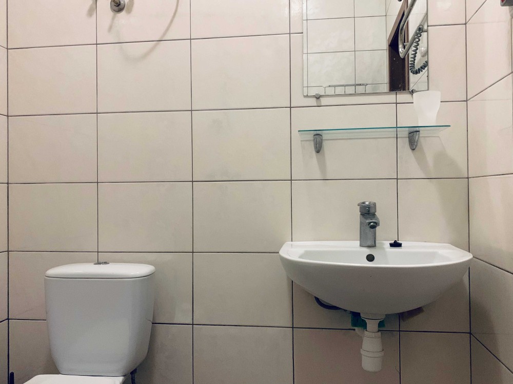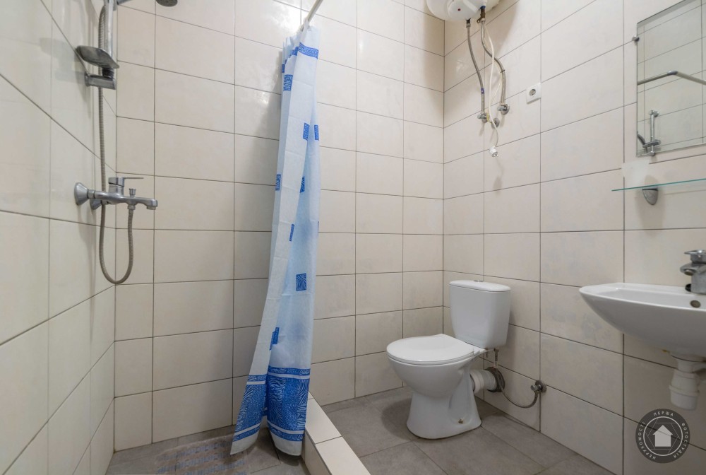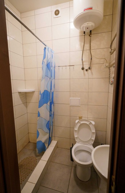 У ванній кімнаті є вся сантехніка: душ, умивальник.