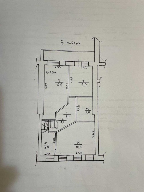 2 поверх-з трьох окремих кімнат ,один санвузол, великий балкон, гардеробна.