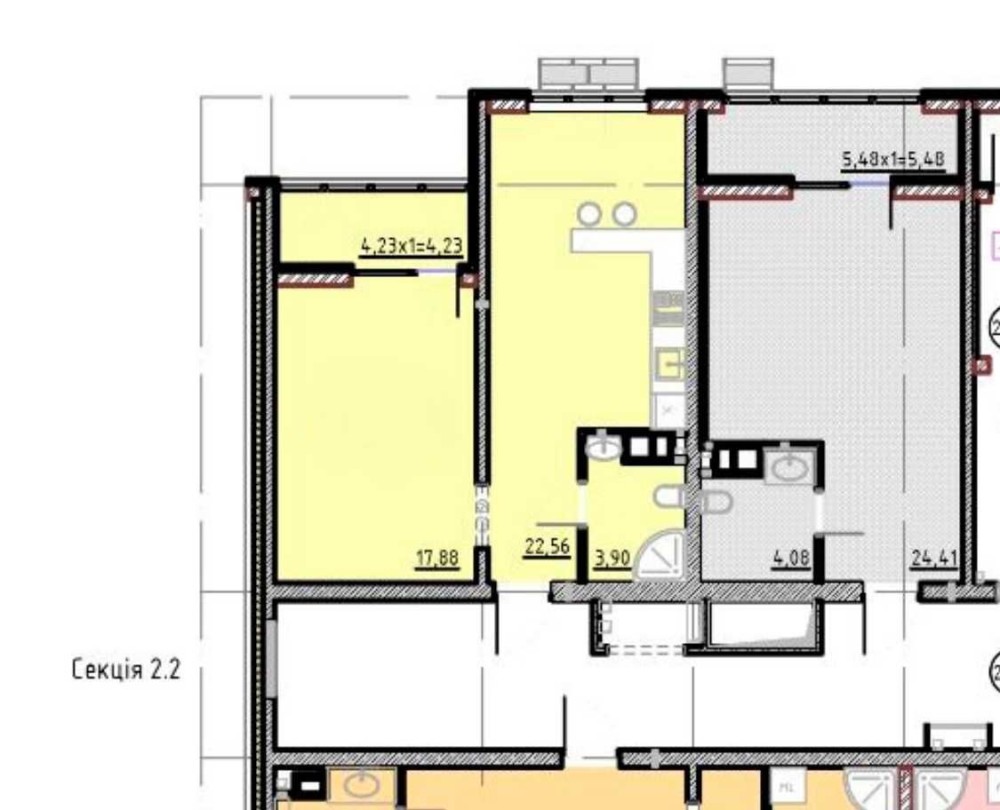 • Площа кухні 22.56 м2