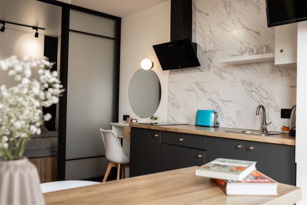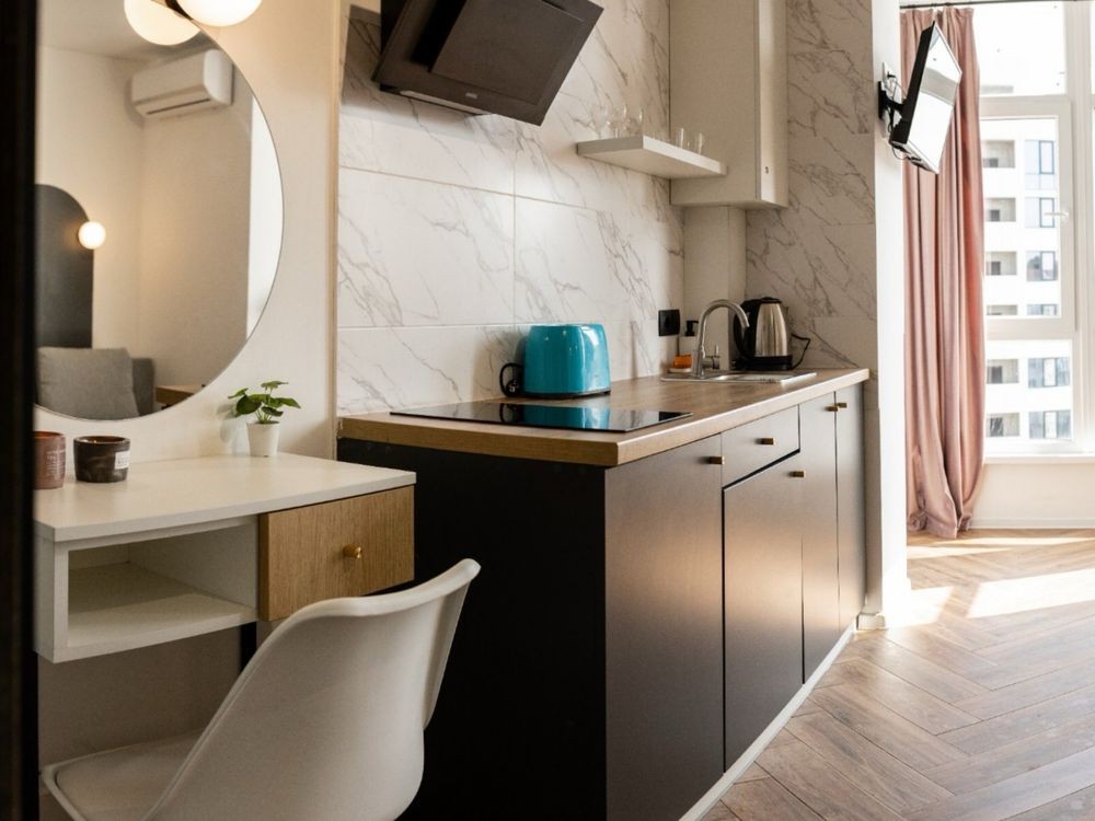 Гарна компактна студія в центрі міста, 5 хв до історичного центру, поруч всі зручності, Wine time, ресторани, кафе, кінотеатр, гарний вигляд на місто з вікна. Студія обладнана міні-кухнею, мінімальним набором побутової техніки, що дуже зручно для приготування сніданку. Є TV, інтернет і все необхідне для короткострокового перебування в Івано-Франківську.