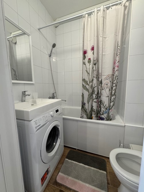 Санвузол компактний, але повністю укомплектований ванною, бойлером, електричною сушкою для рушників, унітазом та пральною машиною.