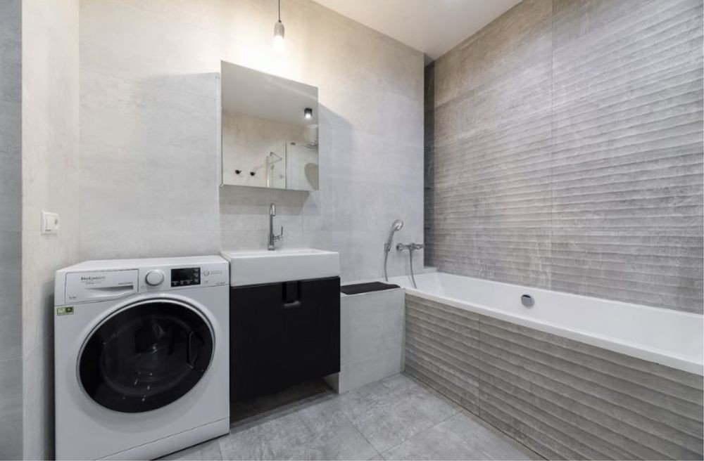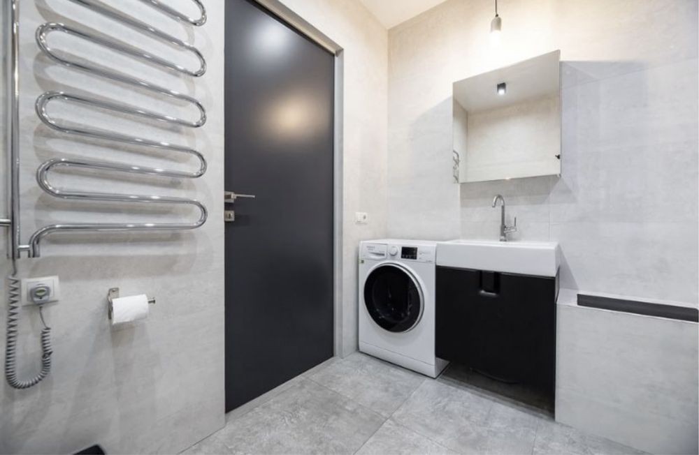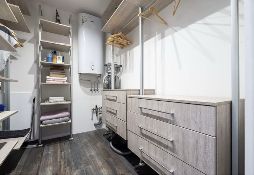 Простора кухня-вітальня, зручне ліжко, робоча зона, ванна кімната (душ і ванна), гардеробна та господарська кімната.