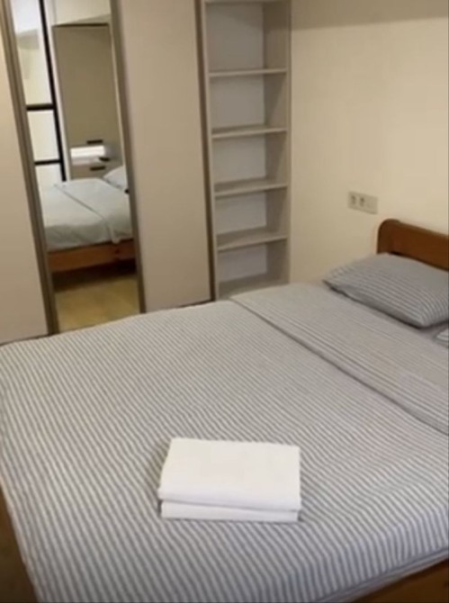 В квартире преобладают светлые тона , мебель и техника новые и современные, двуспальная кровать с ортопедическим матрасом.