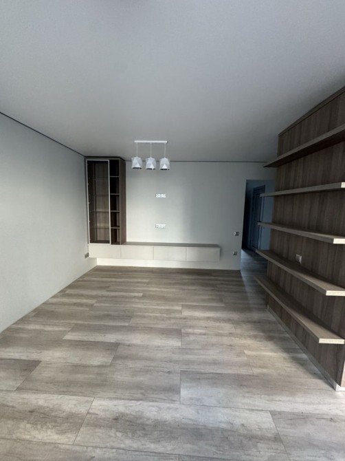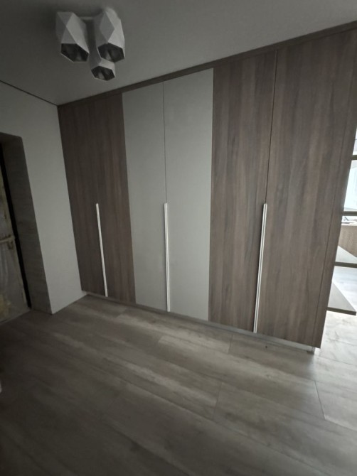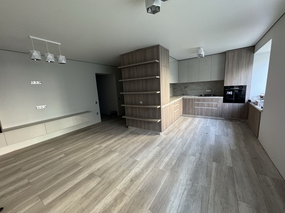 шафою-гардеробом, де заховані всі комунікації та розводка електрики. Кухня обєднана з вітальнею, утворюючи велику кухню-студію, з виходом на простору засклену лоджію. Дві окремі непрохідні кімнати, одна з яких також має велику лоджію з панорамними вікнами.