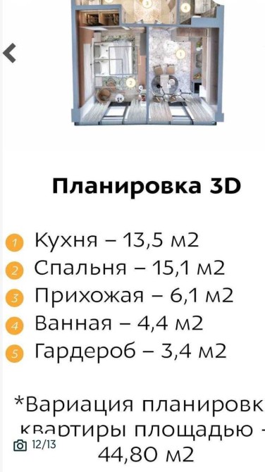 • Загальна площа 44 м2