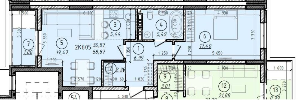 • Загальна площа 58.87 м2