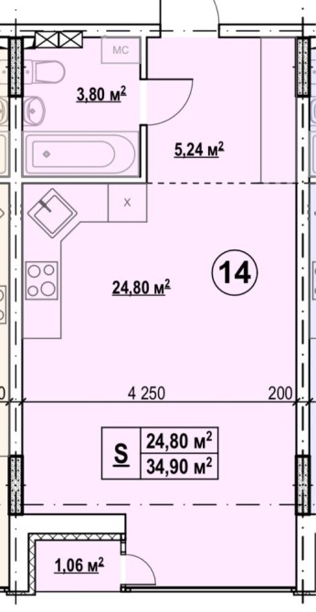 • Загальна площа 34.9 м2