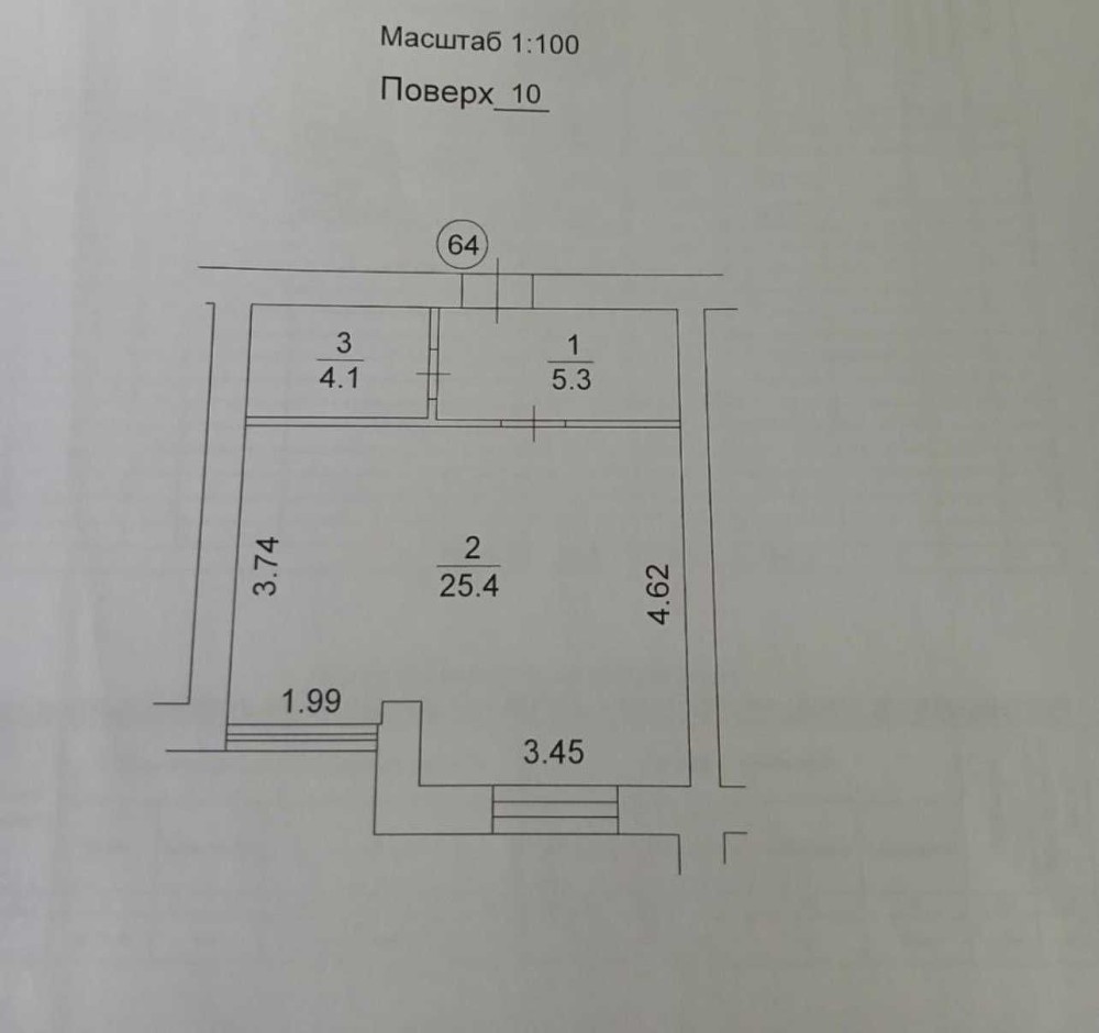 34,8м кв, студія з можливістю зробити окрему кімнату