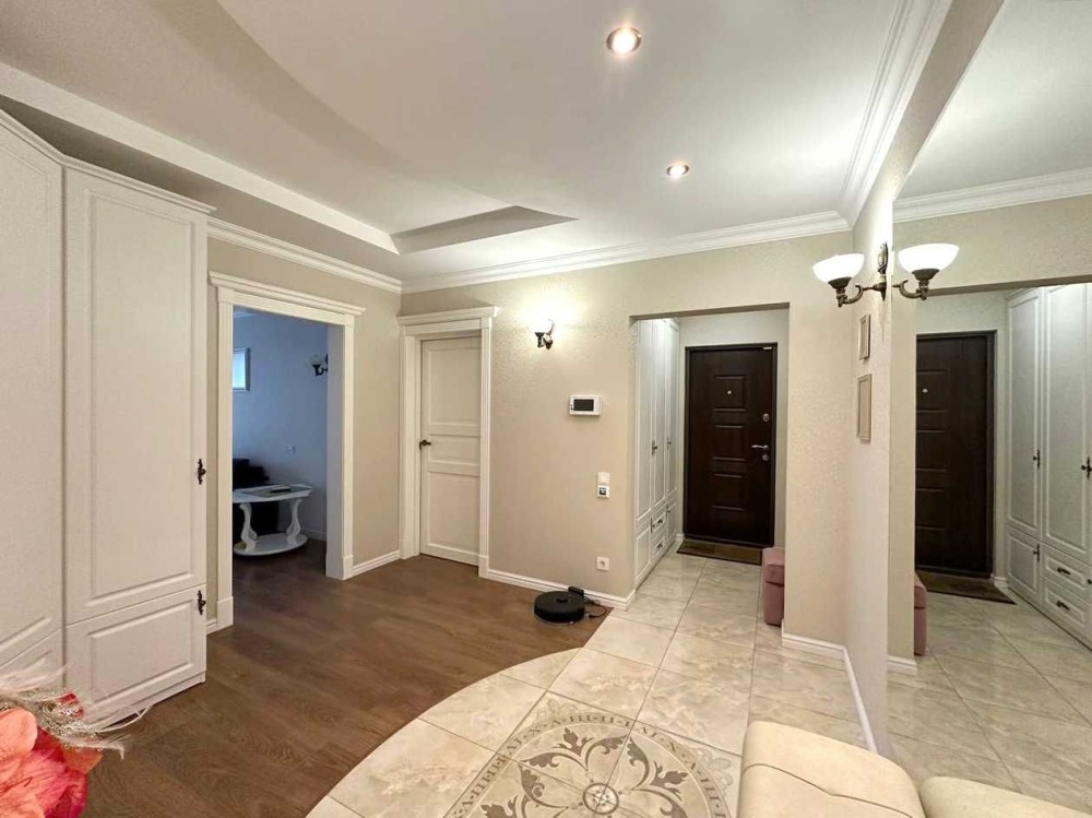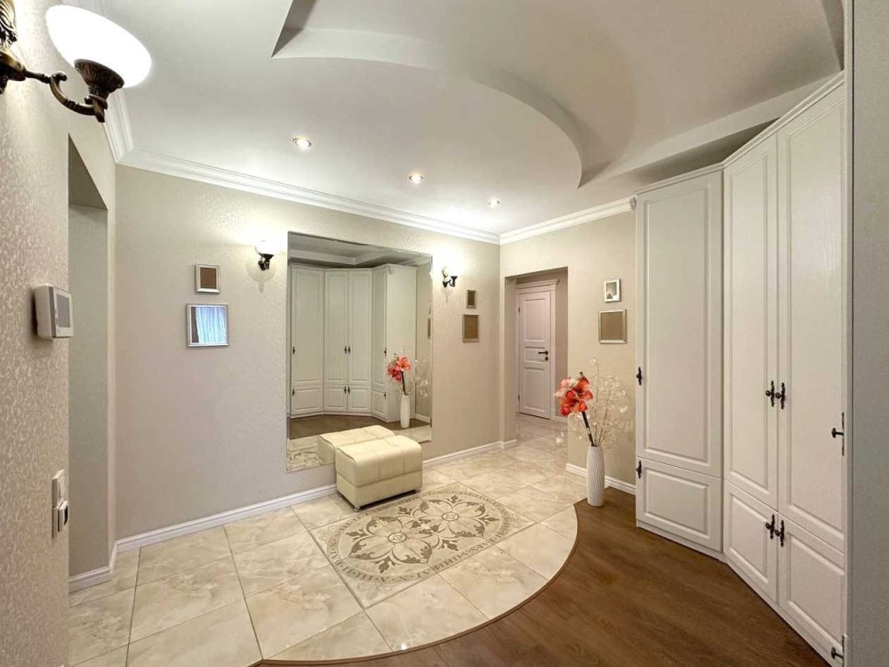 Пропонується дворівнева квартира з терасою та видом на Дніпро ЖК Seven Осокорки — унікальний варіант для тих, хто цінує простір, комфорт і панорамні краєвиди столиці. Квартира розташована на 25–26 поверхах 26-поверхового будинку за адресою: Дніпровська набережна, 20А. Загальна площа — 139 м2, житлова — 63 м2. Це простір, створений для великої та щасливої родини. Перший рівень: – просторий хол — 9 м2; – кухня-вітальня — 44 м2 із панорамними вікнами від підлоги до стелі, звідки відкривається захопливий вид на Дніпро; – гостьовий санвузол — 1, 5 м2. Другий рівень: – три спальні: 10, 5 м2, 18 м2 та 23 м2 — кожна з виходом на терасу; – гардеробна — 8 м2; – просторий санвузол — 8, 8 м2; – головна перевага — тераса 35 м2 з панорамним видом на Дніпро та зелені пагорби Києва. Це місце для ранкової кави, вечірніх посиденьок і затишних зустрічей. Квартира світла, сонячна, з великими вікнами та сучасним плануванням. Інфраструктура ЖК Seven: Комплекс закритого типу з цілодобовою охороною та підземним паркінгом. Усередині — затишний двір із дитячими та спортивними майданчиками, зеленою зоною та доріжками для прогулянок. У пішій доступності: ТЦ River Mall, ТЦ Аркадія, супермаркети Novus і Сільпо, ресторани, набережна Дніпра. Зручна транспортна розв’язка та близькість метро Осокорки роблять локацію ще привабливішою. Чому варто обрати саме цю квартиру? – дворівневе планування з чітким розділенням на зони; – простора кухня-вітальня для зустрічей і свят; – велика тераса з панорамою на Дніпро й Київ; – сучасний ЖК з продуманою інфраструктурою. Дворівнева квартира з терасою та видом на Дніпро ЖК Seven Осокорки – не просто квадратні метри — це простір для життя, відпочинку й натхнення. Не втрачайте шанс — такі квартири в ЖК Seven з’являються рідко!