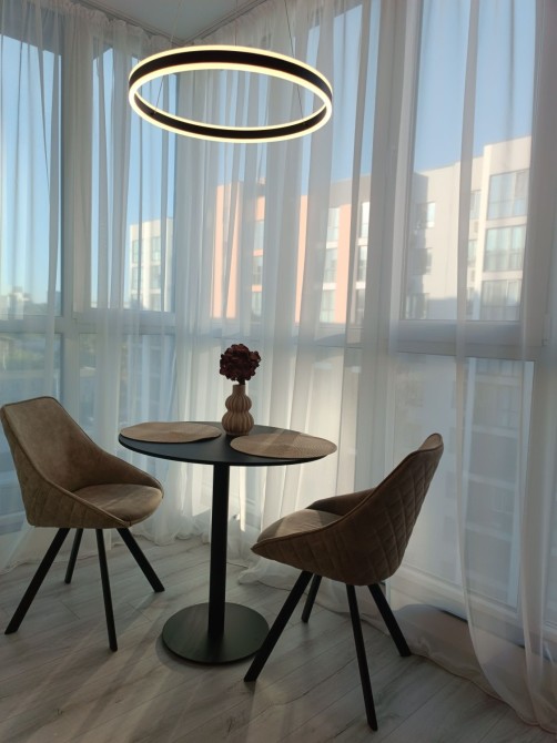 Просторная квартира в новом ЖК Счастливый -2. Индивидуальный дизайн проект в современном стиле. Максимально использовано каждое пространство, что дало возможность реализовать в квартире просторную кухню студию, отдельную спальню и гардеробную. Свое отопление от двухконтурного газового котла. Закрытый комплекс, с детскими и спортивными площадками, большие надземная и подземная парковка.