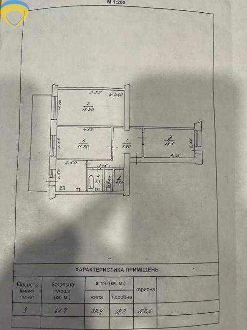 Простора квартира в будинку з цегли з великим прибудованим балконом 20 кв.м. Всі кімнати роздільні. Простий житловий стан.