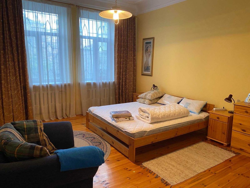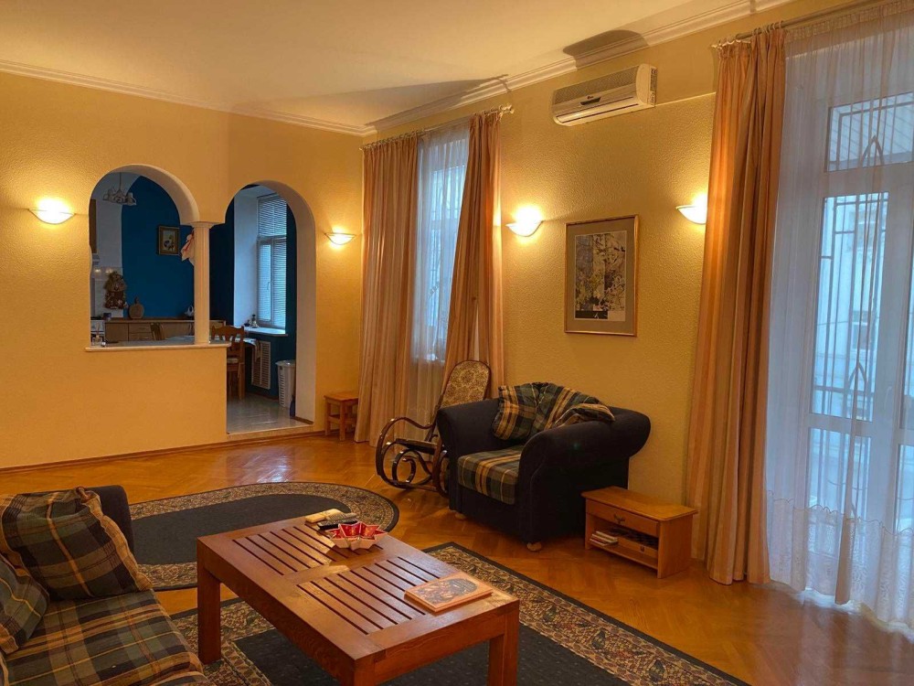 Квартира з двома спальнями на вул. Братській 10. Навпроти бізнес центру Іллінський, де є бомбосховище. Площа 100 кв. м. Знаходиться на 2-му поверсі 5-ти поверхового цегляного будинку без ліфта. Двостороння. Складається з 2х роздільних спальних із заскленим балконом, суміжних вітальнею з виходом на балкон та кухні-їдальні, двох санвузлів: з ванною та з душовою кабіною. Квартира повністю мебльована. Вбудовані шафи та книжкові полиці. Кондиціювання. Бойлер. На кухні: посудомийна машина, холодильник, свч, газова плита, посуд, пральна машина. Станція метро Контрактова площа о 5 хв. ходьби. Вартість 1100 дол. на місяць. Власник ФОП 3-я категорія.