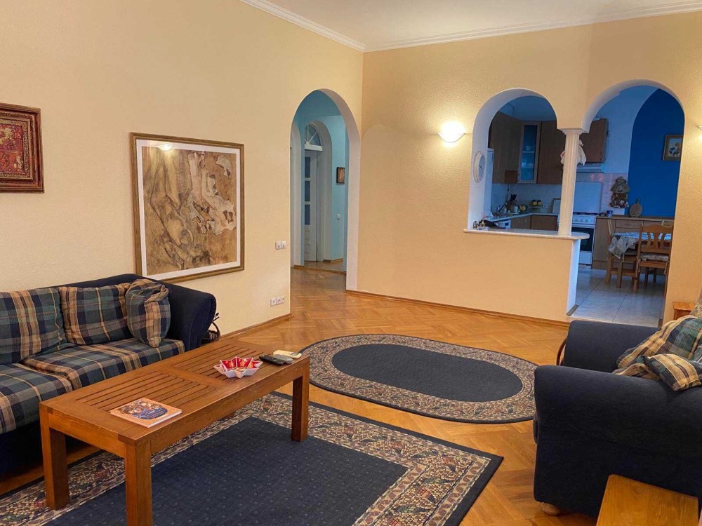 Код: 76. ПОМЕСЯЧНО АРЕНДА АКТУАЛЬНА В ПЕРИОД С 01.09 ДО 30.05 (в летний сезон сдается посуточно от 2-х суток, раннее бронирование от 4-х суток и более). Апартаменты в Ж/К «Аркадийский дворец», ул. Аркадийское плато, 5/3, 7/12 эт. дома, общая площадь 120 кв. м. Евроремонт 2009 года (обновлен в 2019 году), три отдельные спальни (две спальни без окон), кухня-студия с диваном и выходом на террасу с видом на море, сплит-система по охлаждению комнат. В санузле душевая кабина. Закрытая, охраняемая территория, паркинг, комплекс находится прямо над пляжем «Аркадия» в ста метрах от моря. Самый популярный курортный район и центр развлечений Одессы, район пляжей, ночных клубов, ресторанов и аттракционов. Аренда от 1-го месяца и более. Стоимость может варьироваться в зависимости от срока аренды. Перед просмотром уточните наличие и детали по VIBER, WHATSAPP или TELEGRAM, указав «КОД» из объявления. КОМИССИЯ ЗА УСЛУГИ РИЭЛТОРА - 50% от месячной аренды (разовая оплата при оформлении договора).