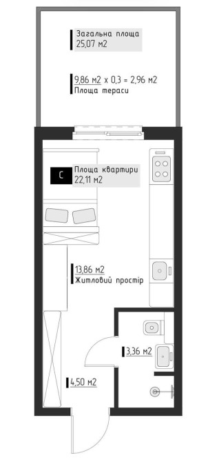 • Загальна площа 25 м2