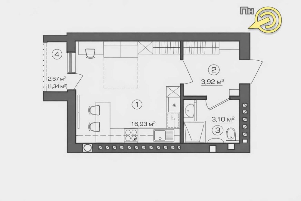 • Загальна площа 25.29 м2