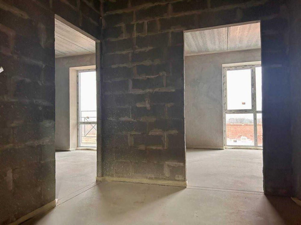 В квартирі чистова стяжка на підлозі, штукатурка несучих стін, вхідні двері, двері на балкони;