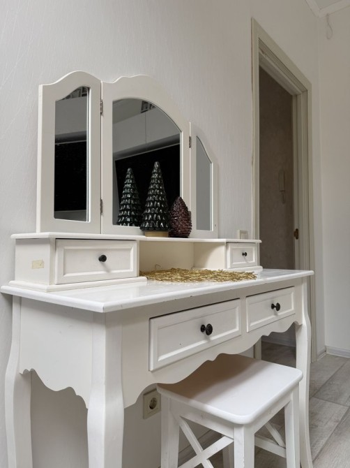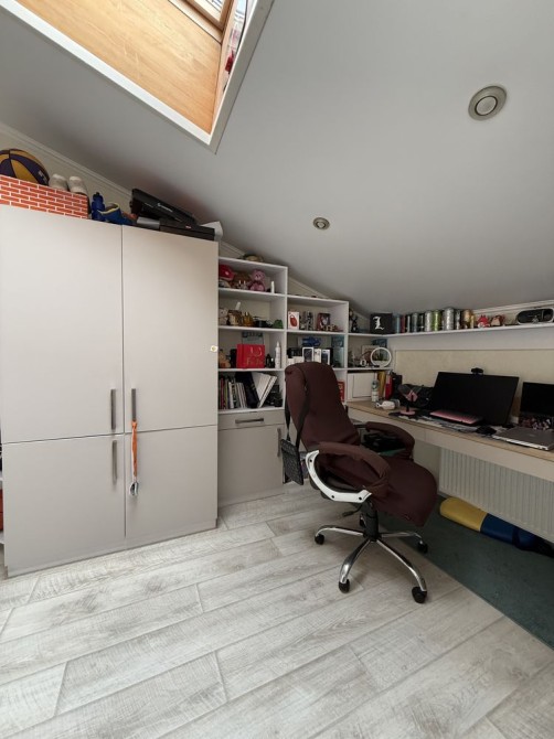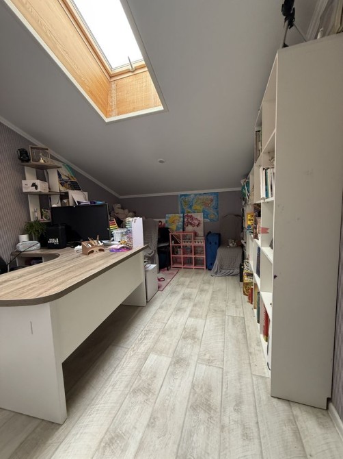 Квартира має два рівні , на першому - кухня вітальня , гостьовий санвузол з душем , вітальня відокремлена від кухні роздвижною системою , кімната з балконом, другий рівень - величезний санвузол з ванною, дві дитячі кімнати укомплектовані всім необхідним, кабінет та шикарна батьківська кімната з просторим гардеробом.