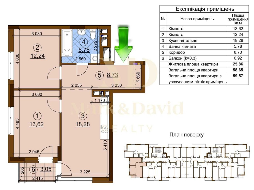 • Загальна площа 60 м2