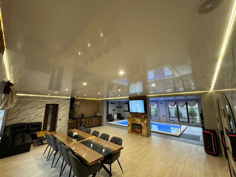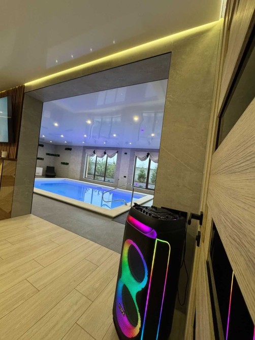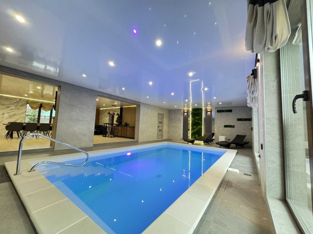 Забудьте про метушню у стінах нашої сучасної лазні. Стильний авторський ремонт створює атмосферу спокою, а простора аквазона з великим теплим басейном дозволяє насолодитися плаванням після гарячої парної. Це місце, де естетичне задоволення доповнює фізичне відновлення.