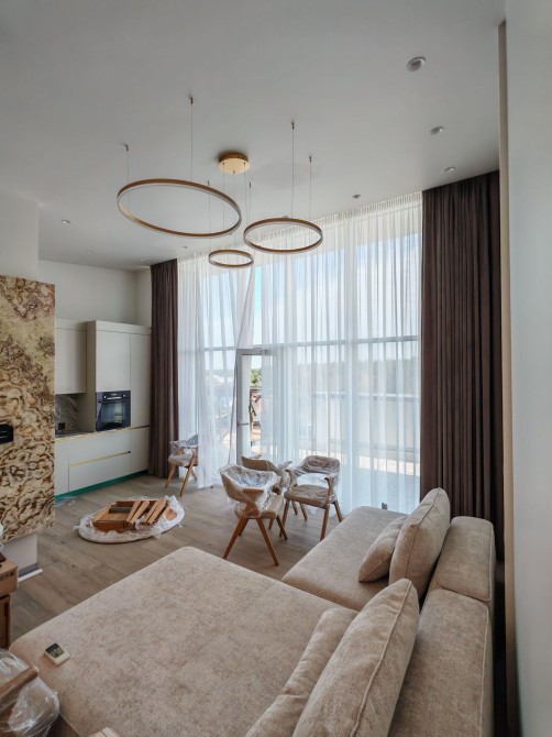 Встановлено Сейф. Алюмінієві панорамні вікна. 3 квартири на поверсі. В інтер'єрі: натуральний онікс, мармур. Кухня обладнана сучасною технікою – газовою поверхнею, духовкою, великим холодильником, пральною та посудомийною машинами, з великою кількістю місць для зберігання та затишною обідньою зоною. Освітлення регулюється для будь-якого настрою. А стелі 3м додають простору і величі.