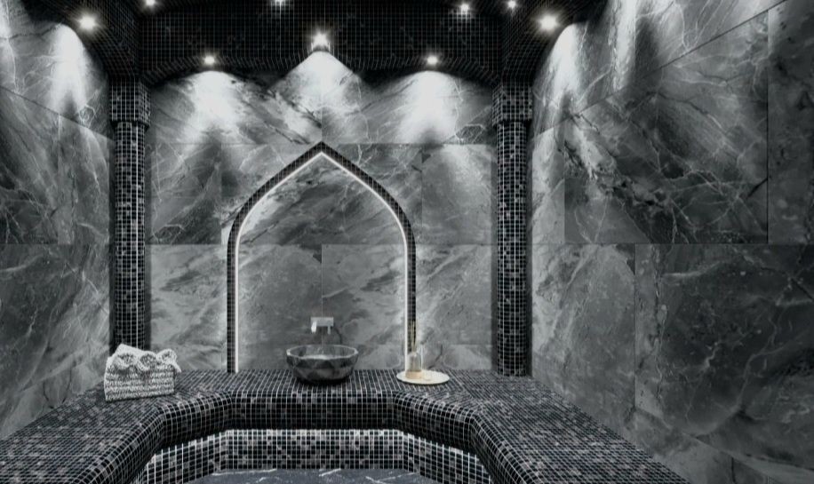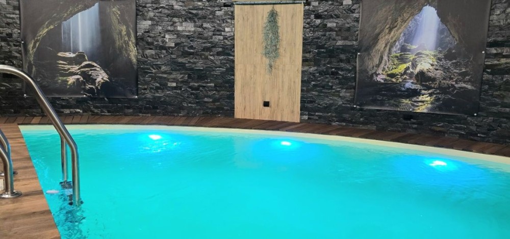 Критий басейн з підігрівом круглий рік з різнокольровою підсвіткою та течією, поруч з басейном знаходиться SPA, хамам, сауна та баня на дровах.