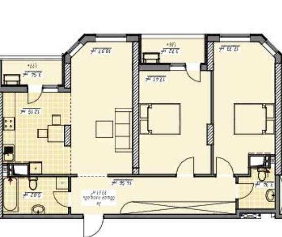 Распланирована в две спальни, кухня и гостиная, есть балкон
