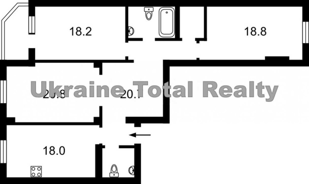Хороше планування: всі кімнати окремі: 18,2м2, 18,8м2 та 20,8м2. Два санвузли, простора гардеробна, одна спальня з виходом на балкон.
