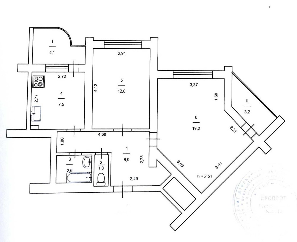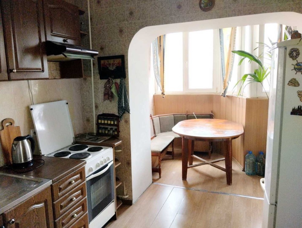 Всё раздельно, зал - 19,2 м2, кухня – 12 м2, лоджия застеклена, состояние жилое.